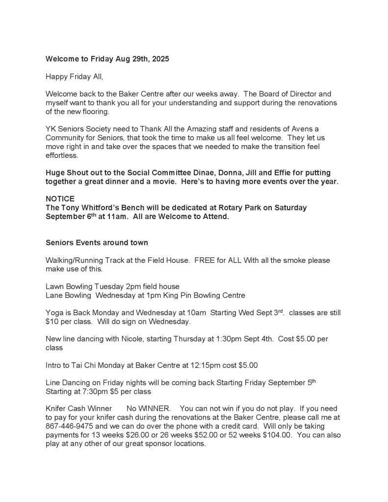 Seniors’ Today Newsletter