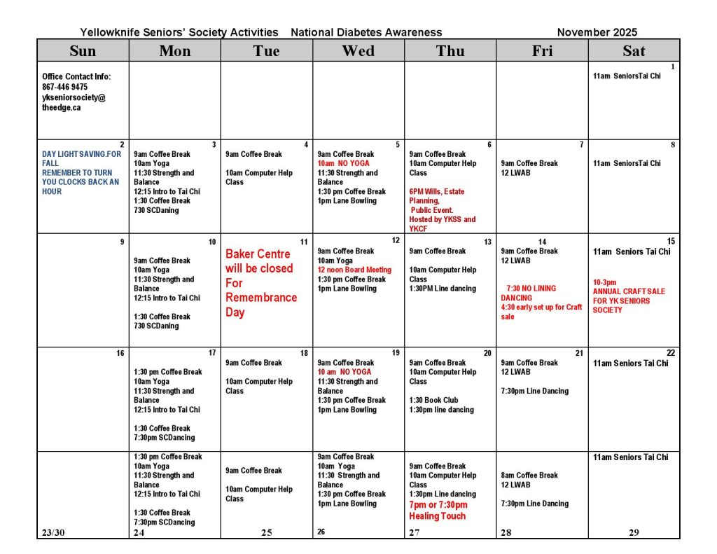The Yellowknife Seniors’ Society is a non-profit organization established in 1992. We manage the Baker Community Centre on Franklin Avenue (50th Street) in Yellowknife.